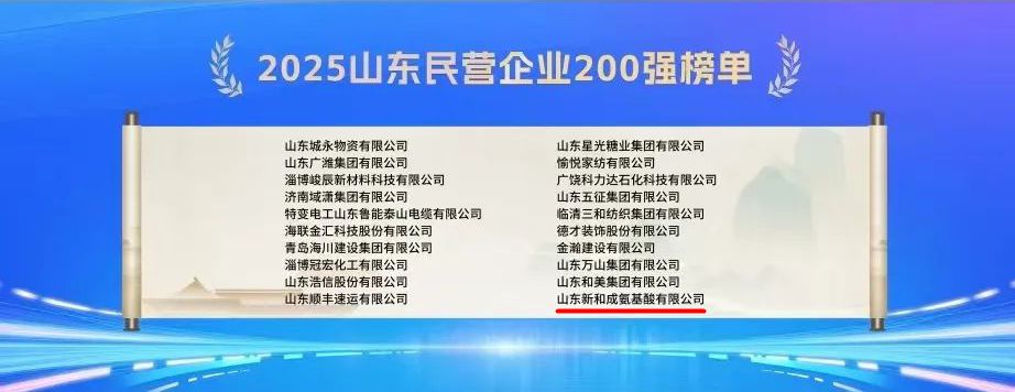 山東新和成氨基酸有限公司登榜“ …
